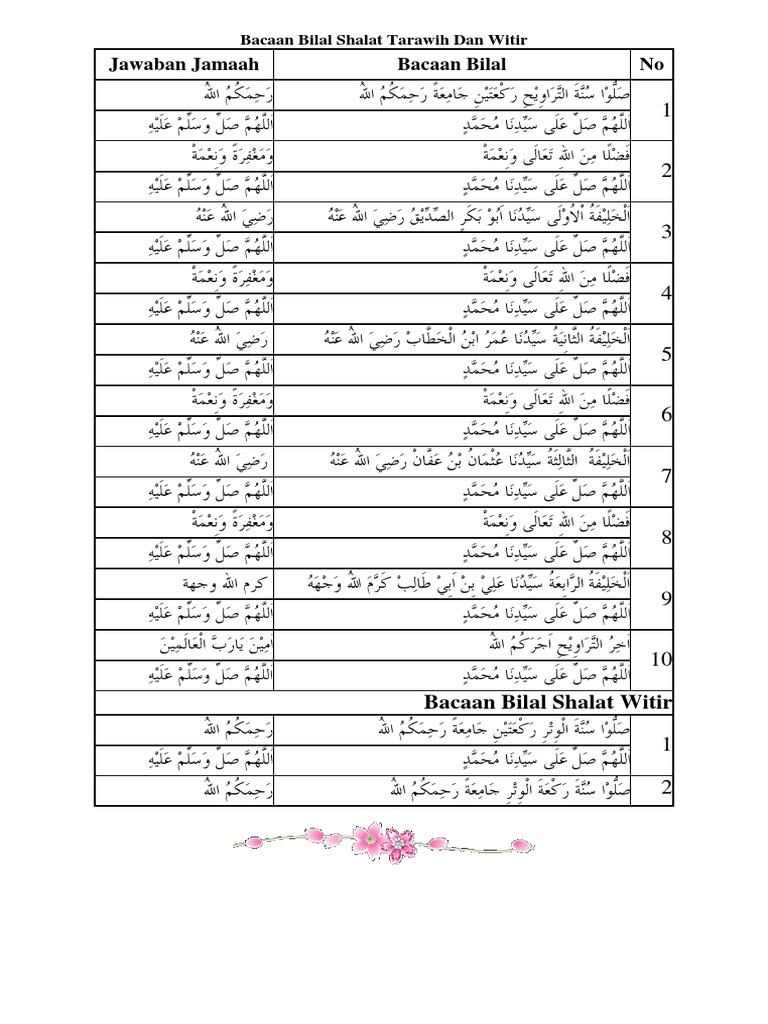 Doa Shalat Tarawih Dan Bacaan Bacaan Bilal Pdf Document