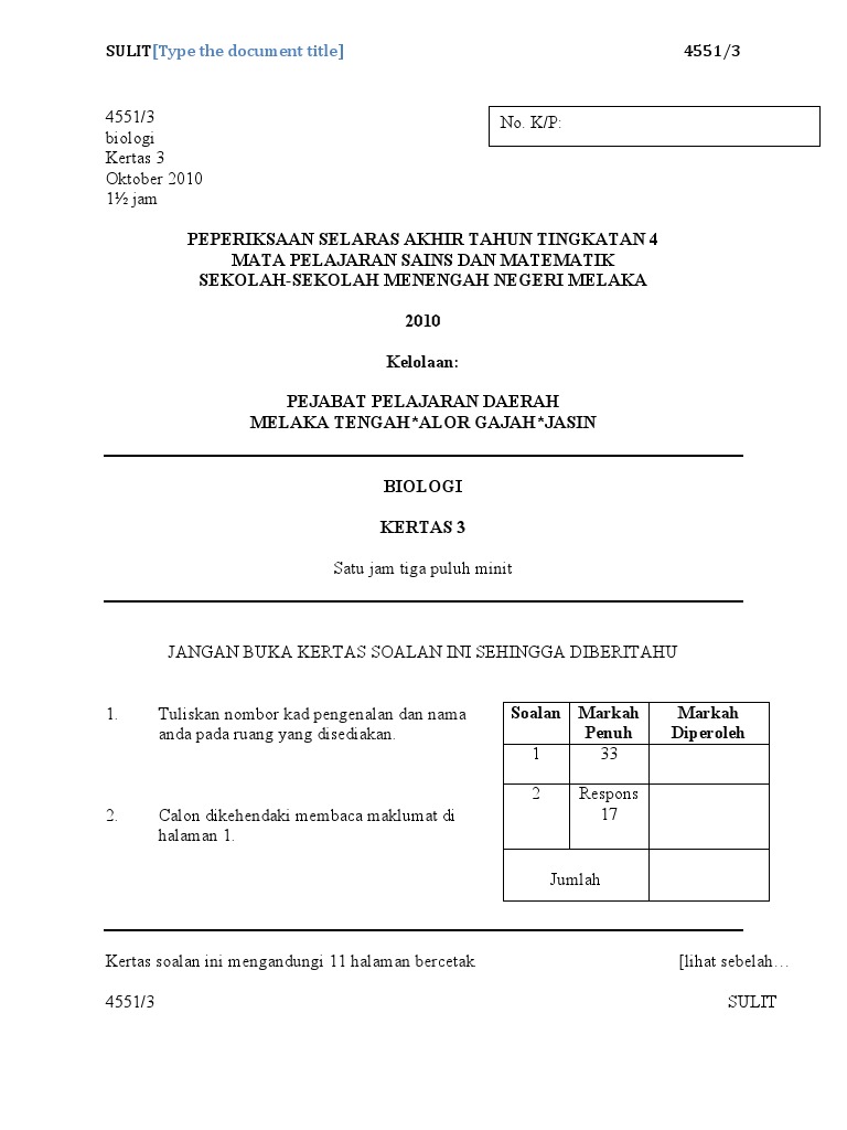 Contoh Soalan Dan Jawapan Biologi Kertas 3 Tingkatan 4 Soalan An