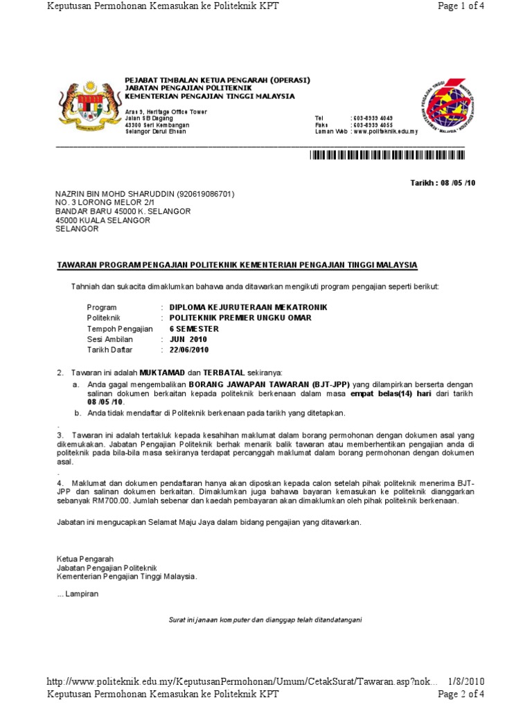 Surat Tawaran Politeknik