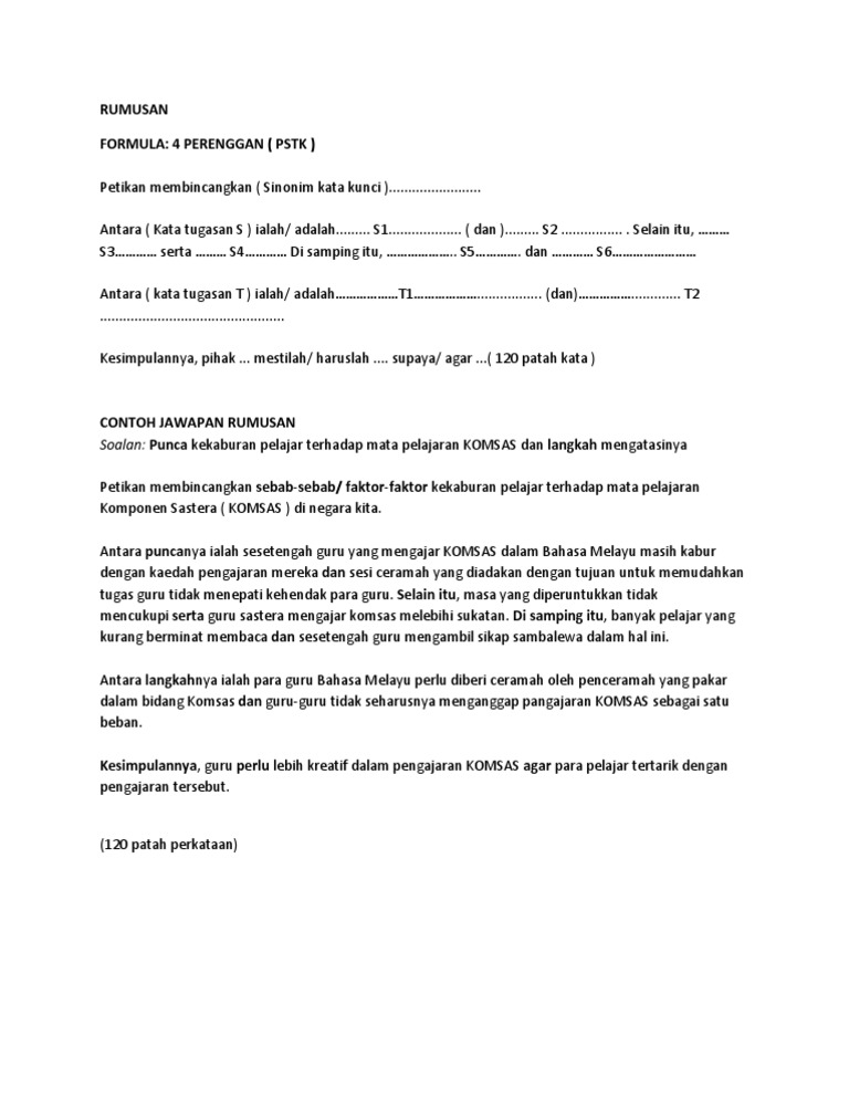 Contoh Soalan Rumusan Bahasa Melayu Pt3 Soalan An