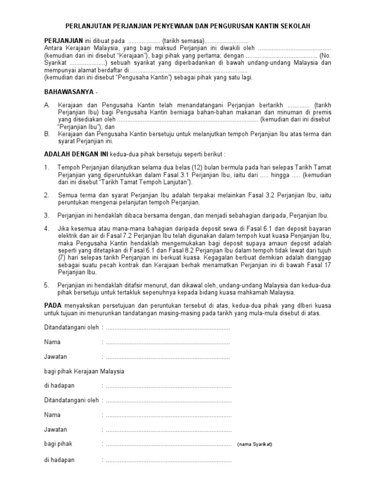 Contoh Surat Sambung Kontrak Kantin Sekolah
