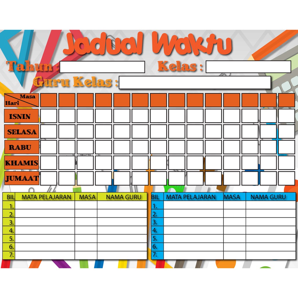 Design Template Jadual Waktu Kelas