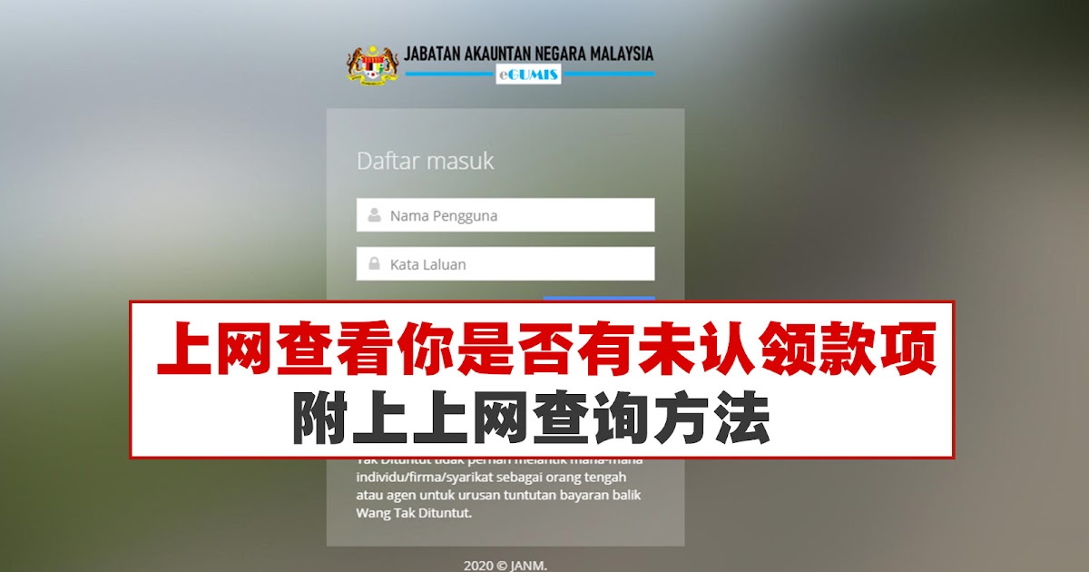 Egumis Semakan Wang Tak Dituntut Wtd Online Janm