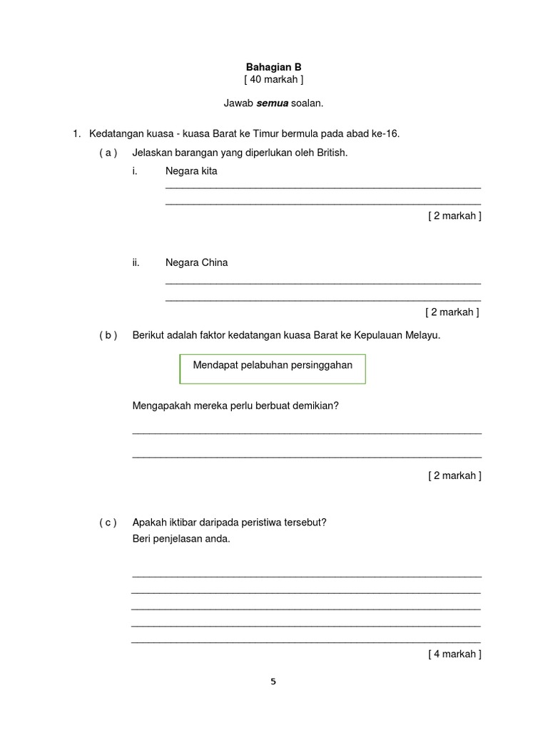 Sejarah Soalan Skema Jawapan Kertas 3 Tingkatan 5