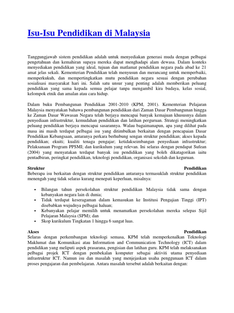 Isu Isu Terkini Isu Isu Pendidikan Di Malaysia