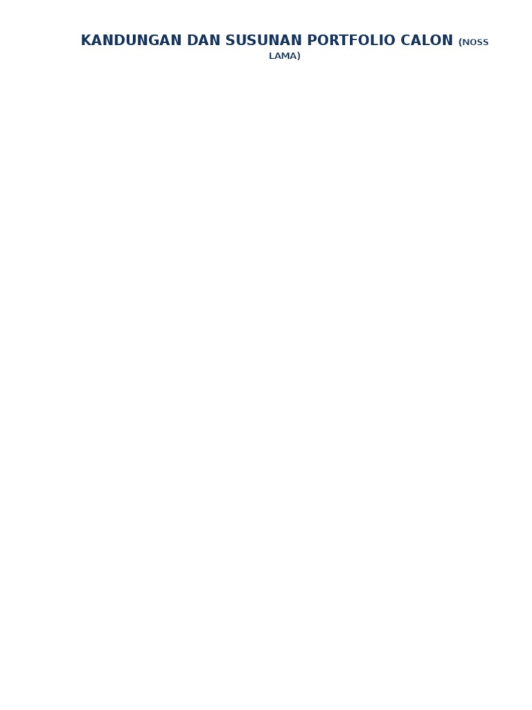 Kandungan Dan Susunan Portfolio Calon