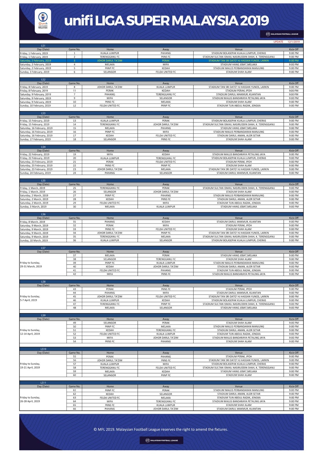 Jadual Penuh Perlawanan Unifi Liga Super Malaysia 2019 Dan Kedudukan Terkini Liga Super Travel Eat Lifestyle Blog