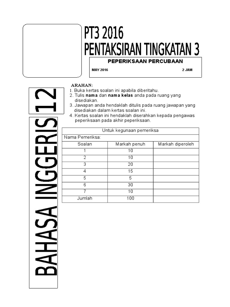 Soalan Percubaan Pt3 2016 Gurubesar My