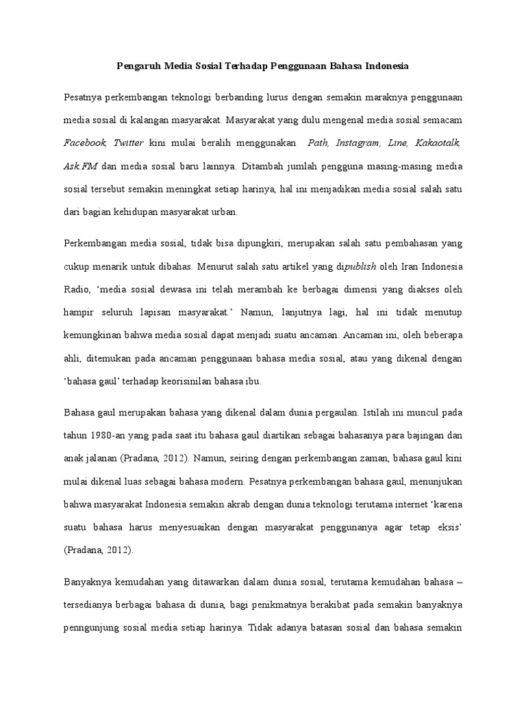 Pengaruh Media Sosial Terhadap Penggunaan Bahasa Indonesia