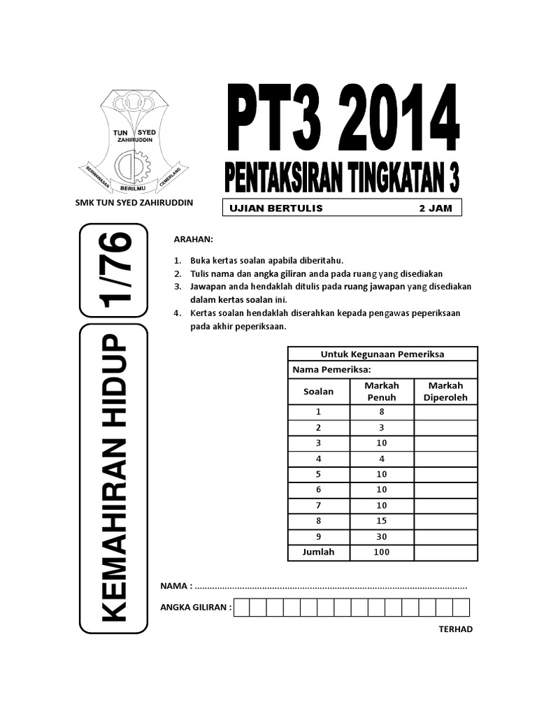 Contoh Muka Depan Kertas Soalan Peperiksaan Percubaan Pt3 Print
