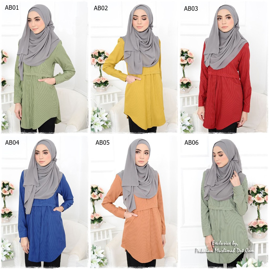 Aira Muslimah Blouse Labuh Baju Menyusu Pocket Blouse Office Blouse Plain Stripe Shopee Malaysia