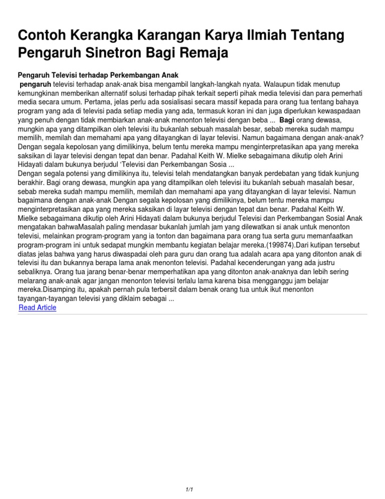 Contoh Kerangka Karangan Karya Ilmiah Tentang Pengaruh Sinetron Bagi Remaja 2