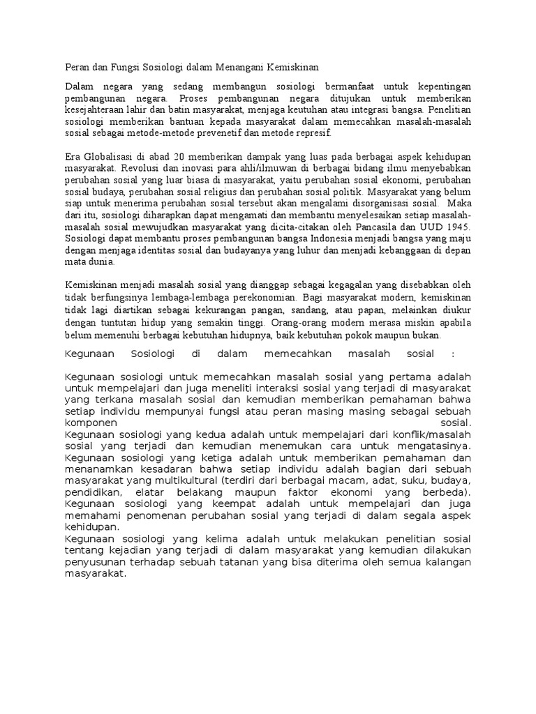 Peran Dan Fungsi Sosiologi Dalam Menangani Kemiskinan