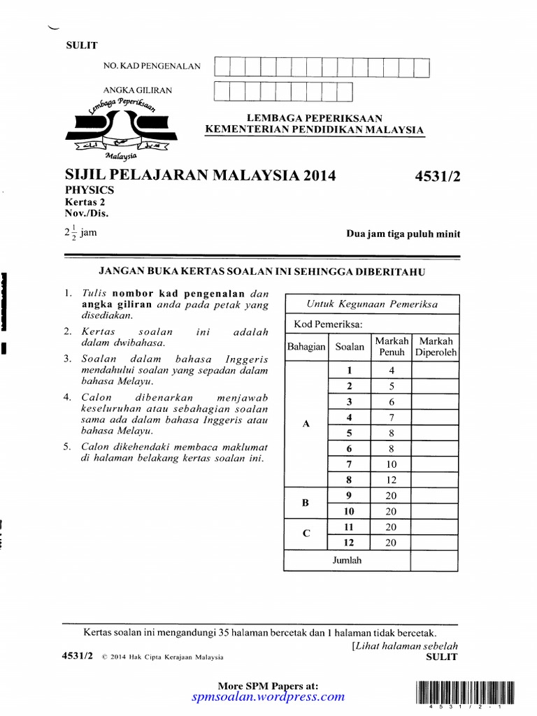 Spm Soalan Spm 2014 Physics Paper And Answer
