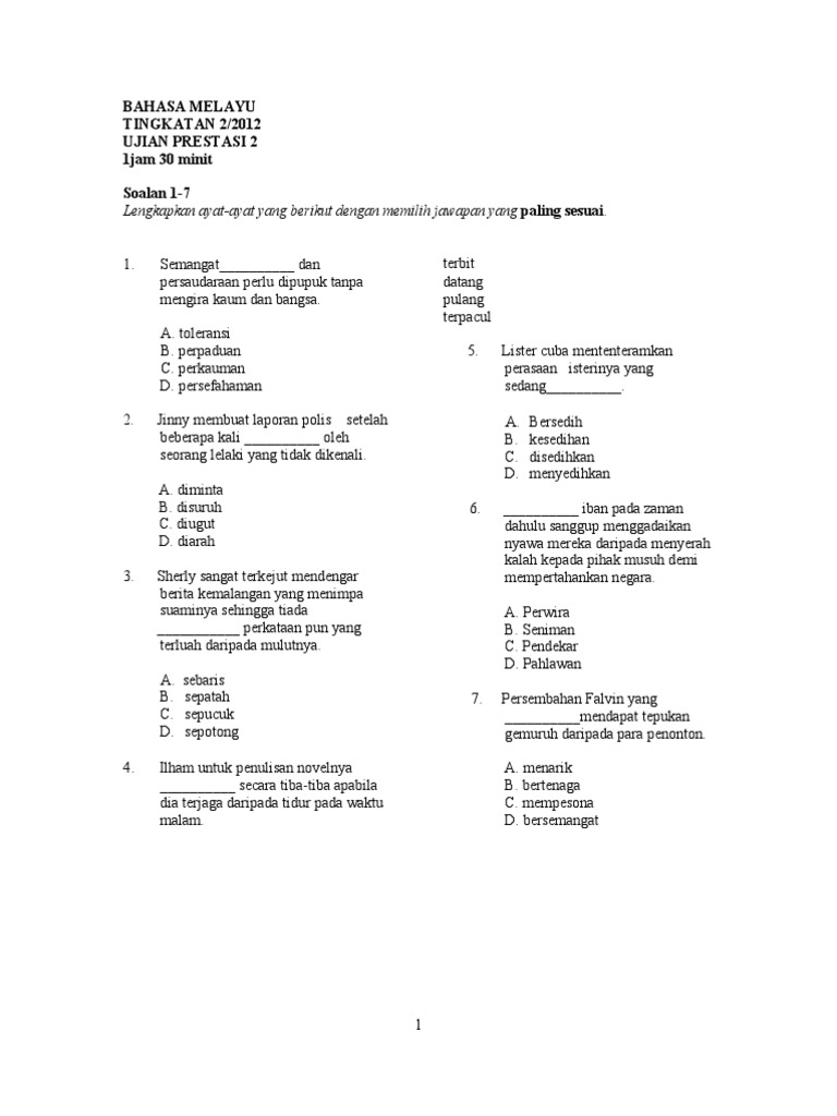 Contoh Soalan Objektif Bahasa Melayu Tingkatan 2 Malacca O
