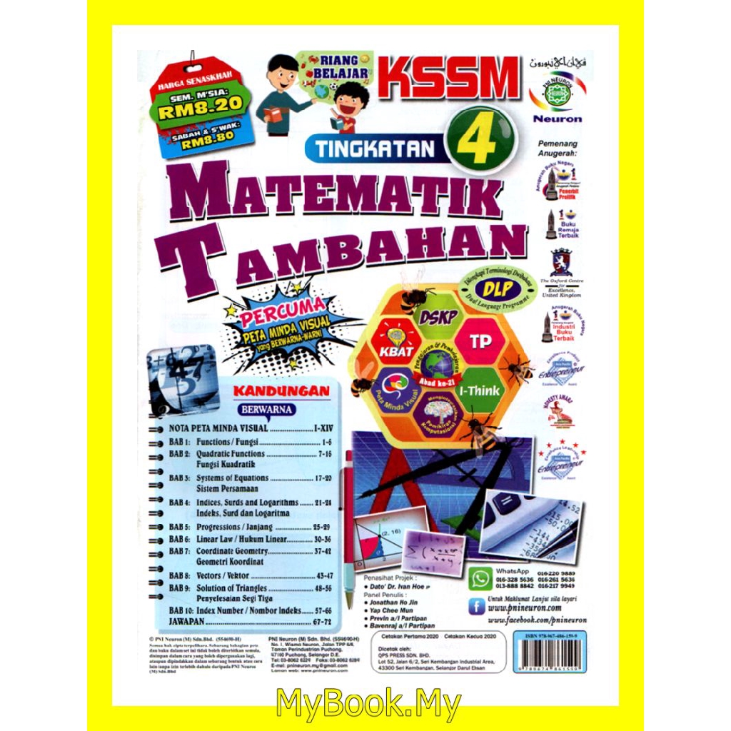 Myb Buku Latihan 2020 Riang Belajar Kssm Tingkatan 4 Matematik Tambahan Additional Mathematics Pni Neuron Shopee Singapore