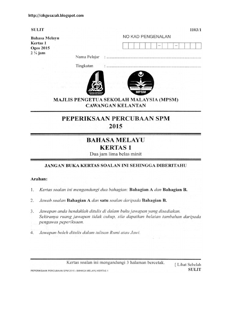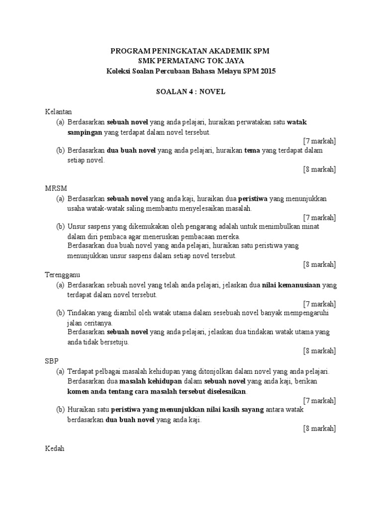 Soalan Percubaan Spm 2015 Bahasa Melayu