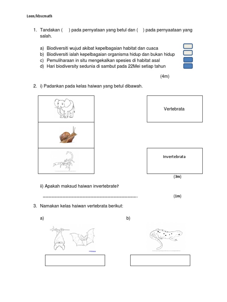 Tg2 Soalan Sains Ujian Awal Tahun 2018