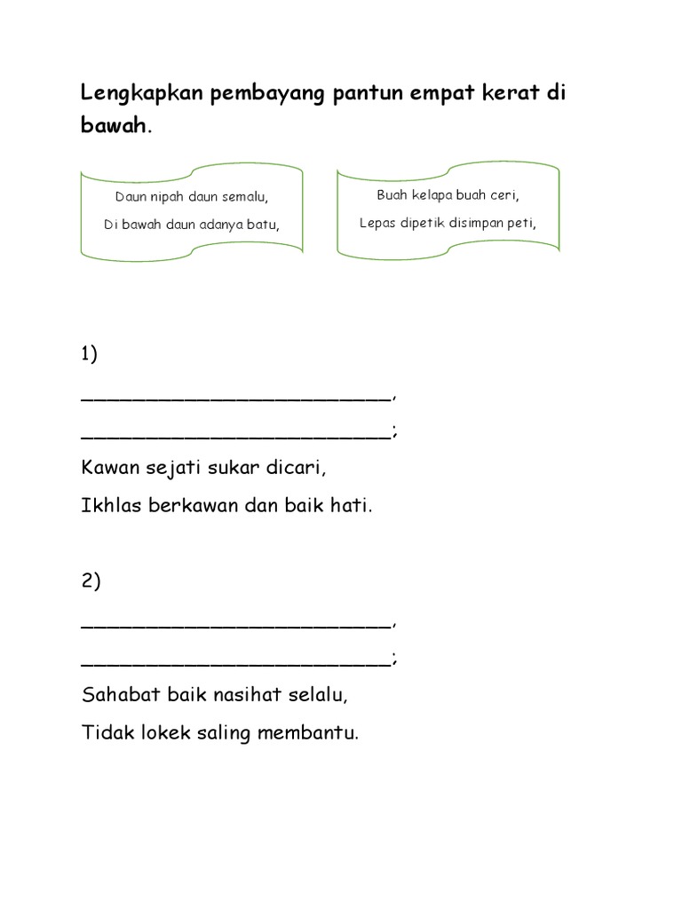 Lengkapkan Pembayang Pantun Empat Kerat Di Bawah