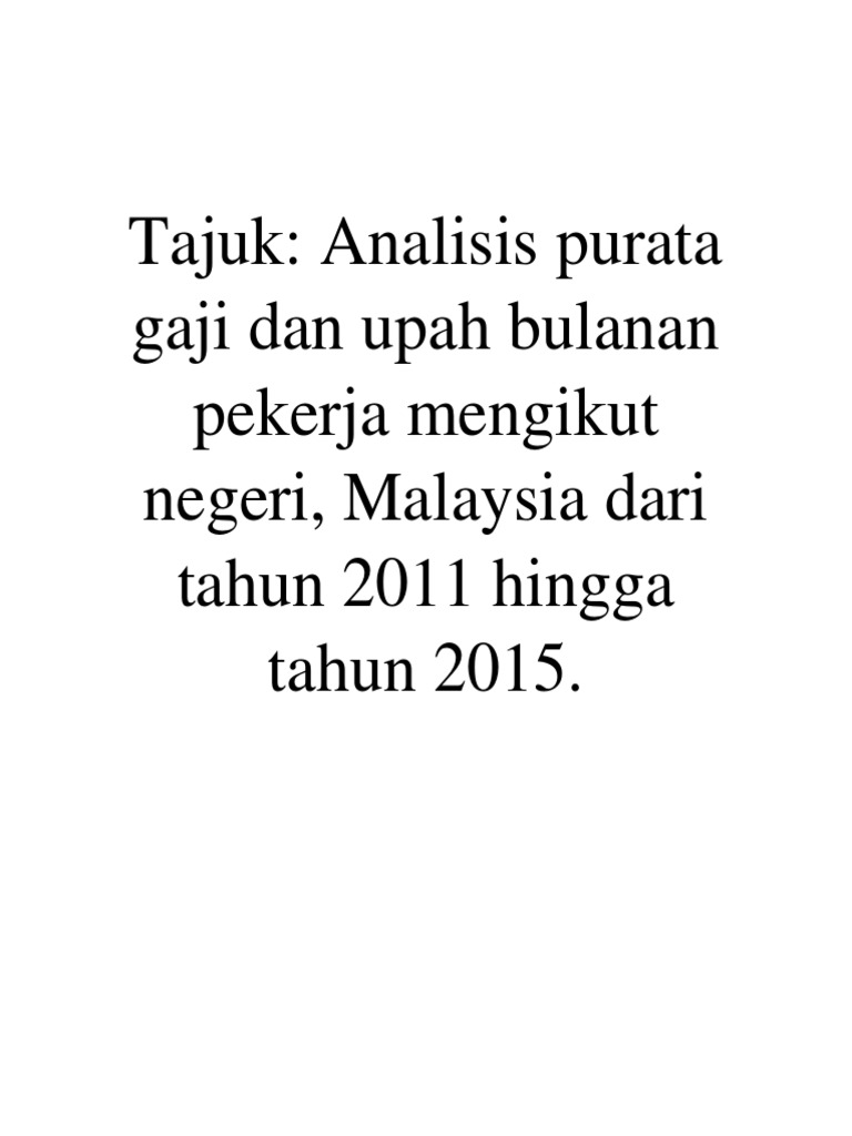 Dalam arah aliran upah purata mengikut strata di malaysia dari tahun 2011 hingga tahun 2015 upah purata meningkat secara berterusan di bandar dan luar bandar. Justeru haruslah dikenalpasti apakah faktor faktor penentu utama yang menyebabkan berlakunya masalah pengangguran di malaysia. The new figures based on the base year of 2010 will be released in the second half of 2015 sumber. Department of statistics malaysia and bank negara malaysia estimates e estimate note.
