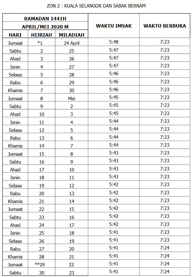 Jadual Waktu Imsak Dan Berbuka Puasa Tahun 1441h 2020m Negeri Selangor Dan Kuala Lumpur Cerita Ceriti Ceritu Mamapipie