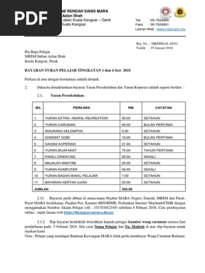 Bayaran Yuran Pelajar Baru T1 Dan 4 2018 1 Pdf